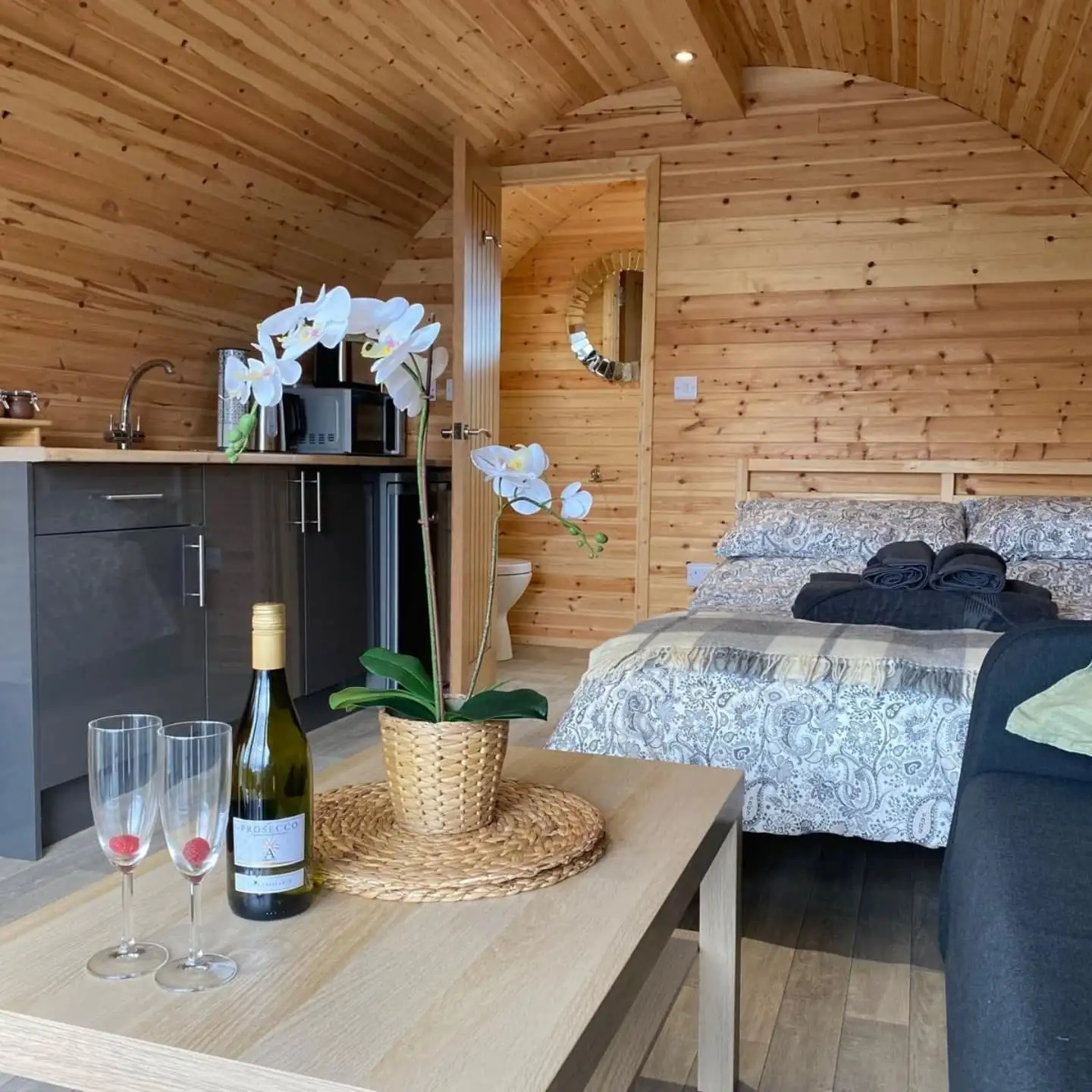 Escape to nature without sacrificing luxury. Unwind in your private hot tub under the stars, wake up to breathtaking outdoor views, and sink into the plush comfort of a master bedroom designed for pure relaxation. This is glamping redefined—where every detail brings you closer to serenity.